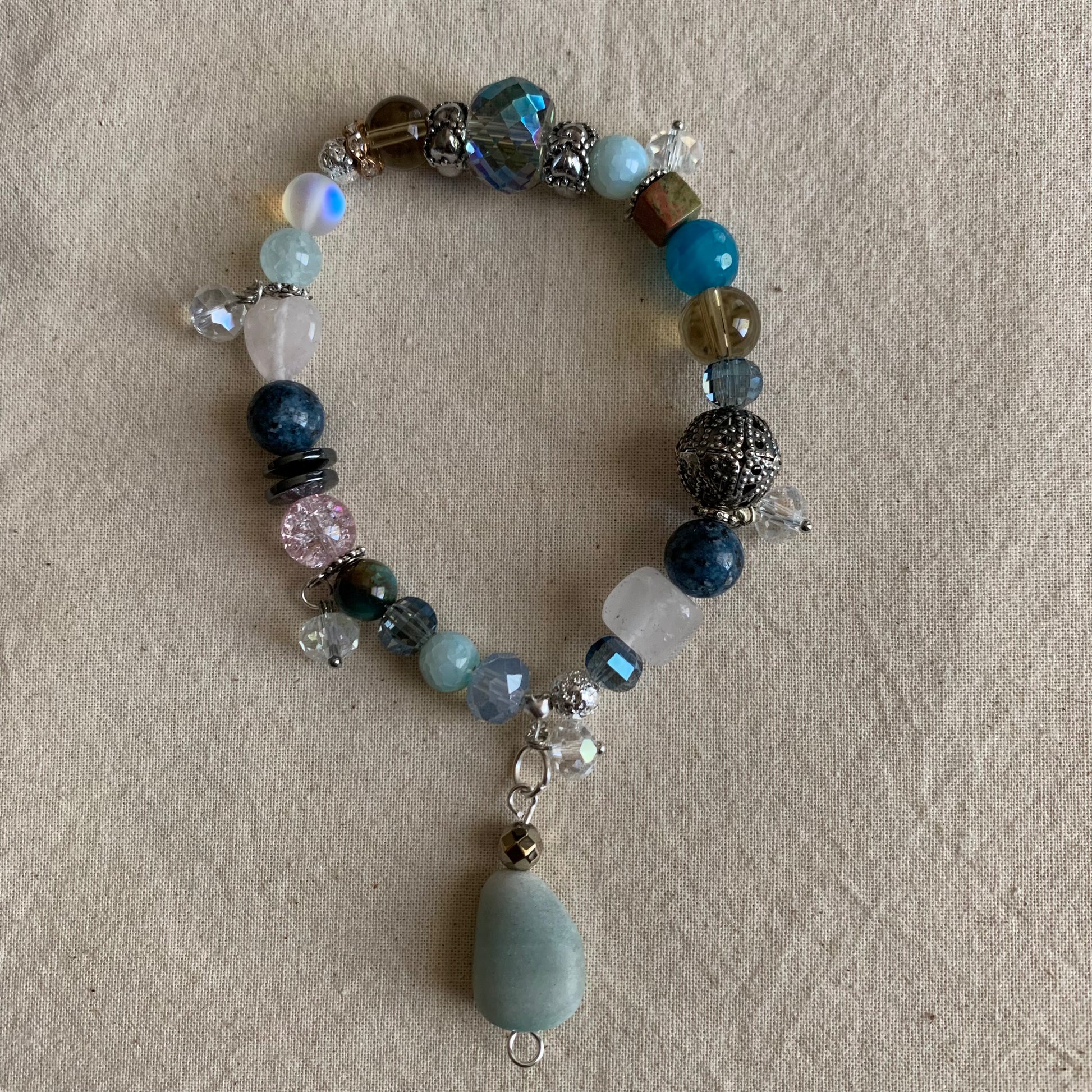 Bracelet stack wear one or together! Every piece is unique one of a kind handmade with high quality mixed metals and semi precious stones including: Picasso Jasper, Agate, Moonstone, Crystal, Hematite,Lava,Rose Quartz.