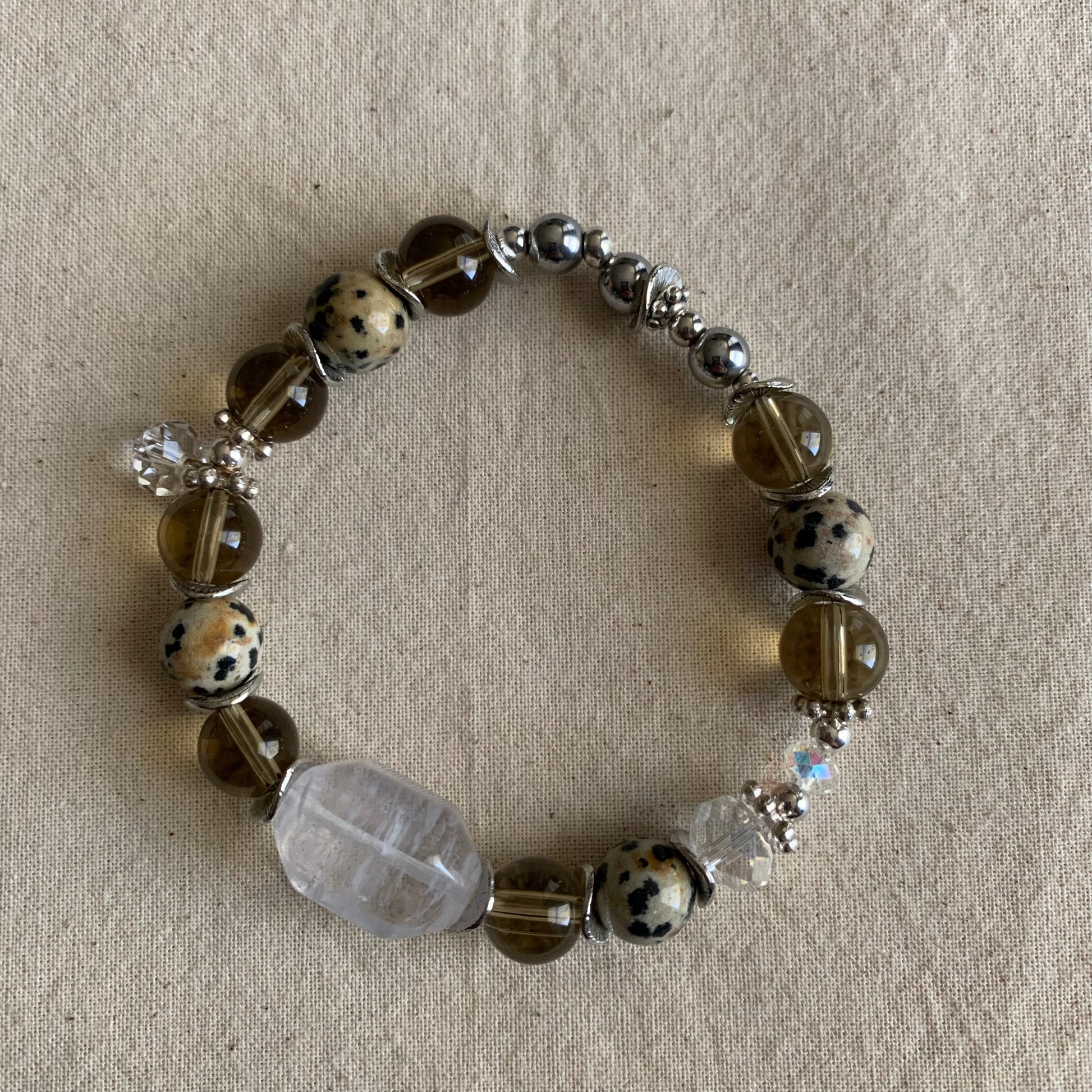 Bracelet stack wear one or together! Every piece is unique one of a kind handmade with high quality mixed metals and semi precious stones including: Dalmatian Jasper, Agate,Hematite.